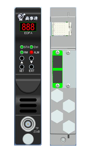GSDT-EDFA系列1550nm光纖放大模塊是設(shè)計(jì)與高性能光纖傳輸網(wǎng)絡(luò),可同時(shí)傳輸模擬信號(hào)和數(shù)字信號(hào)GSDT-EDFA系列產(chǎn)品利用單個(gè)或者雙個(gè)高性能的980nm泵浦激光器,通過(guò)獨(dú)特的設(shè)計(jì)技術(shù),以較低的噪聲系數(shù),提供從14dBm到23dBm的輸出光功率。產(chǎn)品具有高級(jí)的MCU控制電路來(lái)檢控模塊的全部參數(shù)和報(bào)警狀態(tài)。所有參數(shù)都可以通過(guò)前面板的LED顯示燈或者用控制軟件從本地或者遠(yuǎn)程來(lái)控制模塊。